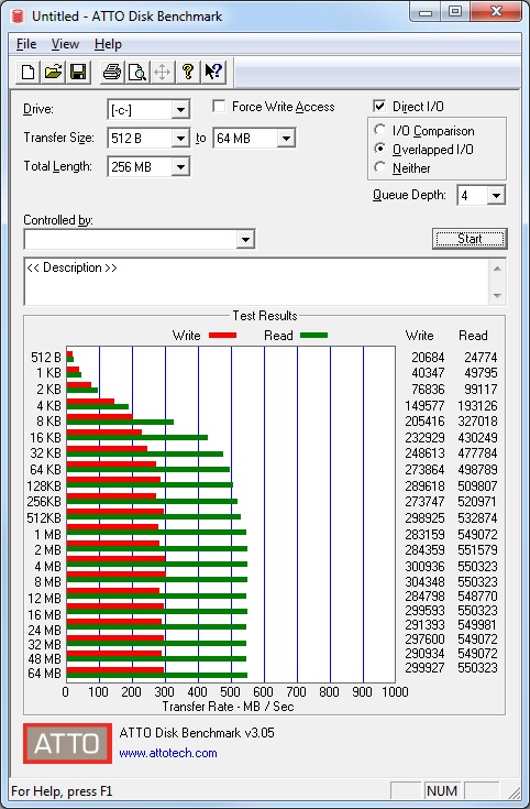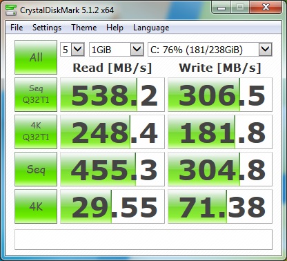 Max Read Speed: 551 Mb/sec Max Write Speed: 304 Mb/sec |