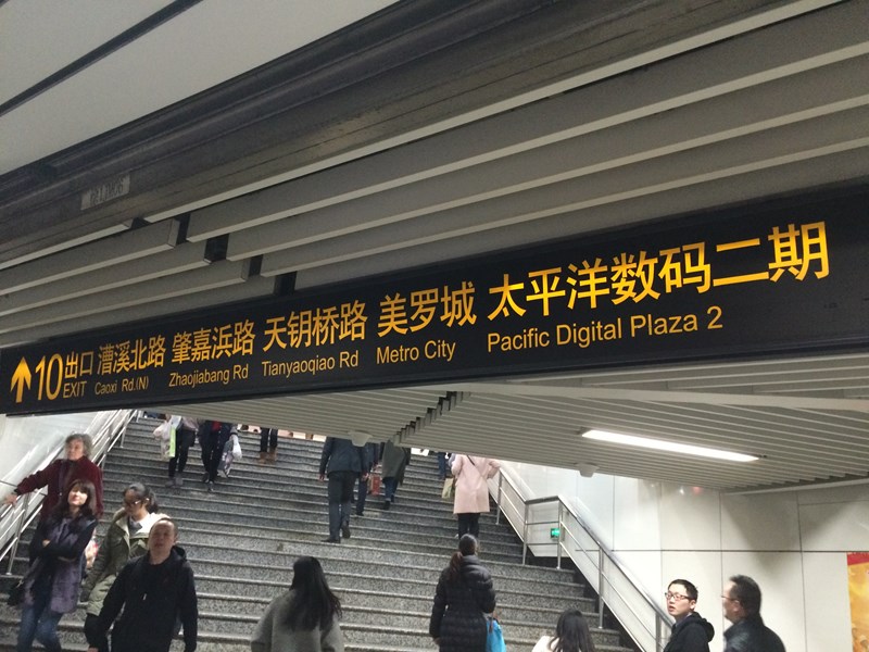 这是上海地铁的地图......与您的最终目的地徐家辉驻车以红色圈套。要到达那里,您需要在上海地铁上获取9号蓝线......并在徐家汇地铁站下车9号出口或10号出口。