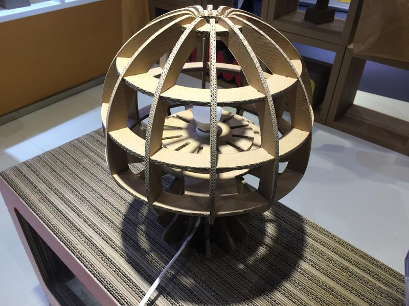 我发现一个有趣的回收纸板做的椅子,台灯。