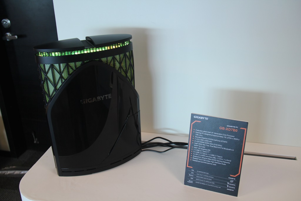 另一个是GB-XD7B0单元(这是什么名字?!)这是一台盒装游戏PC(有点像Xbox),配备英特尔酷睿i7, PCIe M.2 SSD, SO-DIMM DDR4 ram,独立的Nvidia GeForce GTX 970和所有常用的端口和连接器。