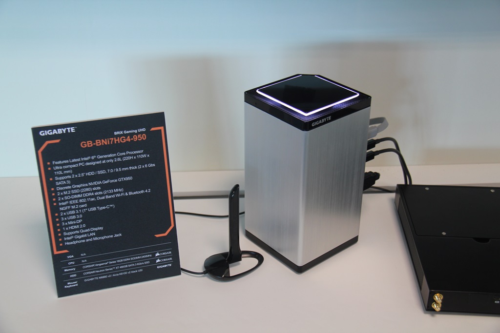 吉字节展示了BRIX迷你PC系统。我们以前都见过。但有趣的是,BRIX游戏UDH(型号:GB-BNi7HG-950)。这是BRIX的高端游戏版!!它配备了英特尔酷睿i7和高达16GB的DDR4内存,并具有独立的Nvidia GeForce GTX 950显卡。支持2个ssd, 2个M.2插槽,2个SO-DIMM插槽。
