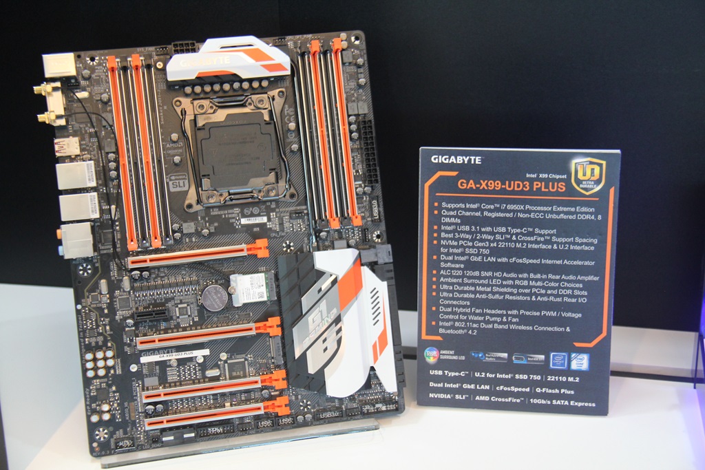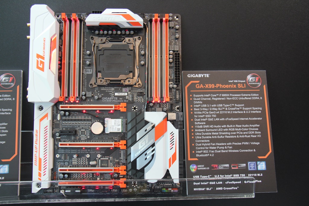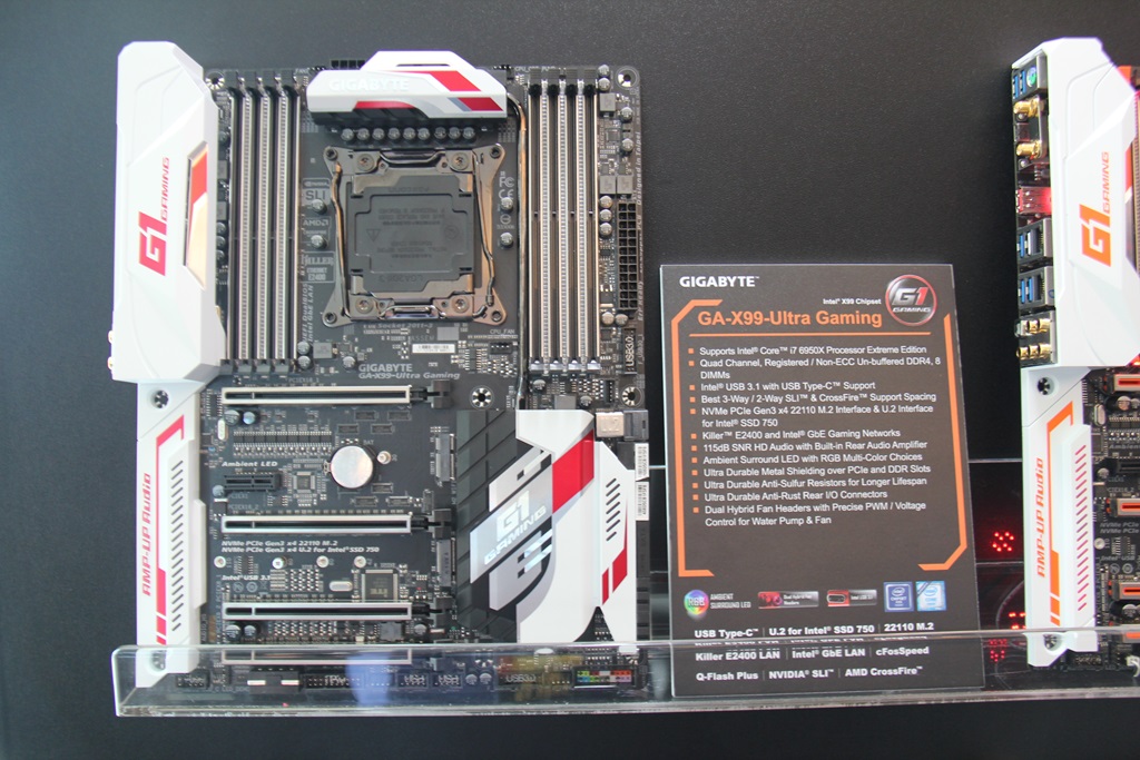 Gigabyte还展示了他们的G1系列X99 Ultra Gaming和X99 Phoenix SLI主板,以及一些使用Z170芯片组的更新的G1系列游戏主板。