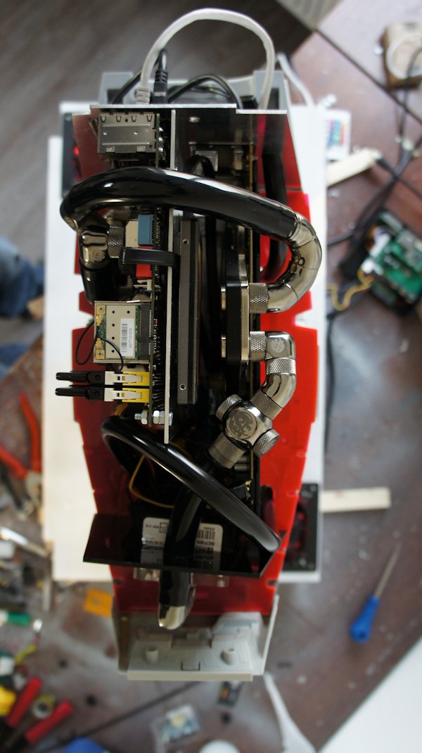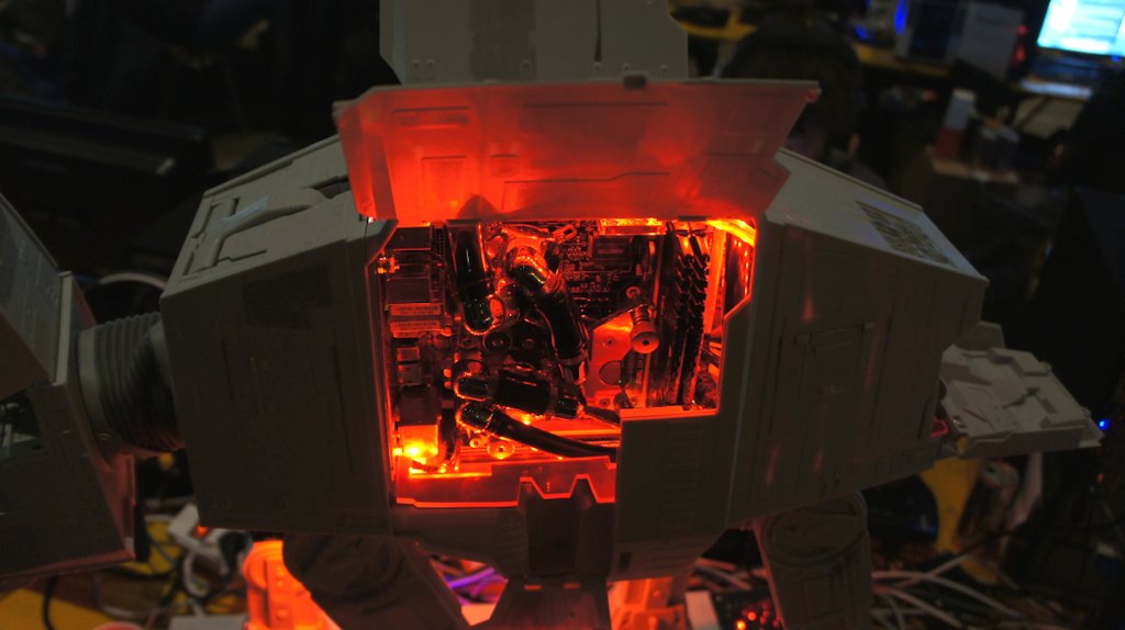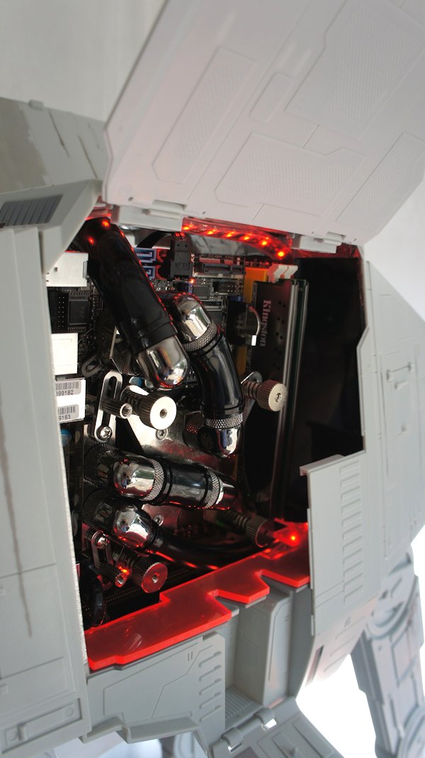 评论 帝国在一直是我最喜欢的一个模型从星球大战传奇。走罐的想法让我很惊艳,我总是倒在VHS(是的,这是时间)带回到看到霍斯场景一遍又一遍。一旦我看到了孩之宝在玩具通过在facebook上的链接我立刻知道。我不得不建立一个电脑。唯一的问题是,玩具没有在欧洲销售。所以我不得不进口是非常昂贵的。 通常我喜欢计划好我做的东西或建筑,而是这个,不知道它是如何捏造或内部结构如何,这是100%的即兴创作。一旦玩具是花了大约一个星期的精心检查和设计工作,看看一切都符合甚至就把我两个弧线球。 我只有3个设计原则。1:没有电缆或连接器可见,2:外观应保持不变(没有风扇孔或诸如此类),3:全功能水冷电脑与一个离散的显卡能玩最新的游戏。 我想最大的挑战是让一切都适合所有的布线和油管腿内的玩具。他们空洞的但我不能多切成它必须支持所有硬件的主体。旁边的电缆连接的内部硬件我也不得不路线HDMI,网络和USB电缆。 整个构建了3周在6周的时期。推迟的原因主要是在ot订购新小部件水冷配件等我改变了布局几次,让它更好的内部设计。 在构建EURISKO教会了我自己的一个小电子产品。我以前的知识我反对从构建设计和安装在5 mw激光。我一直的功率下降原因明显危害人民的眼睛,但他们仍然在黑暗中可见。我不想拍某人的眼睛在一个局域网的派对! 我很喜欢干这个构建,因为它结合了两种我最喜欢的东西:科幻和LiquidCooled电脑! |