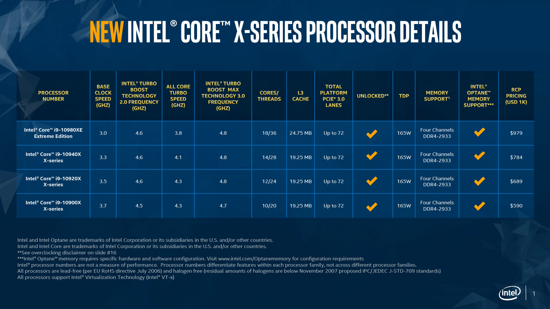 Intel Core X系列比较