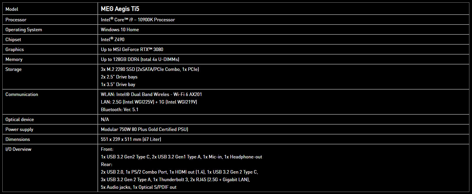 MSI MEG AEGIS TI5规格
