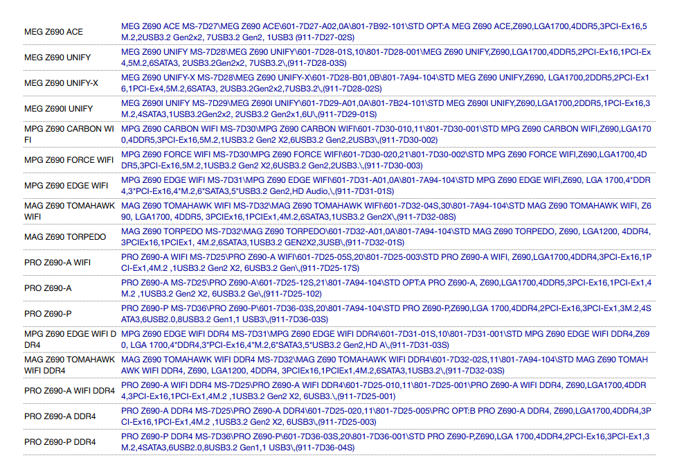 MSI-Z690-lineup
