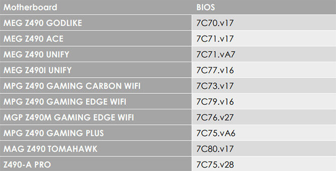 MSI Z490 PCIE 4.0 BIOS更新