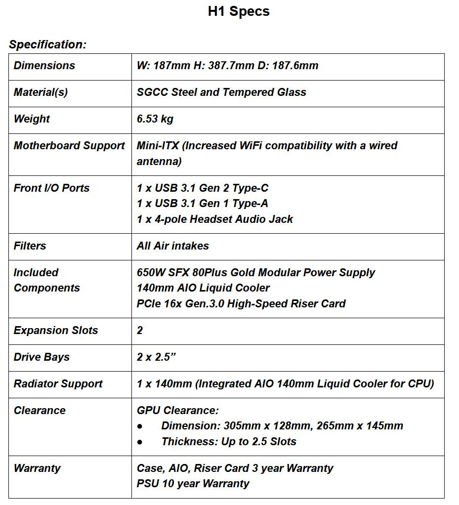 NZXT H1 Mini-ITX案例规格