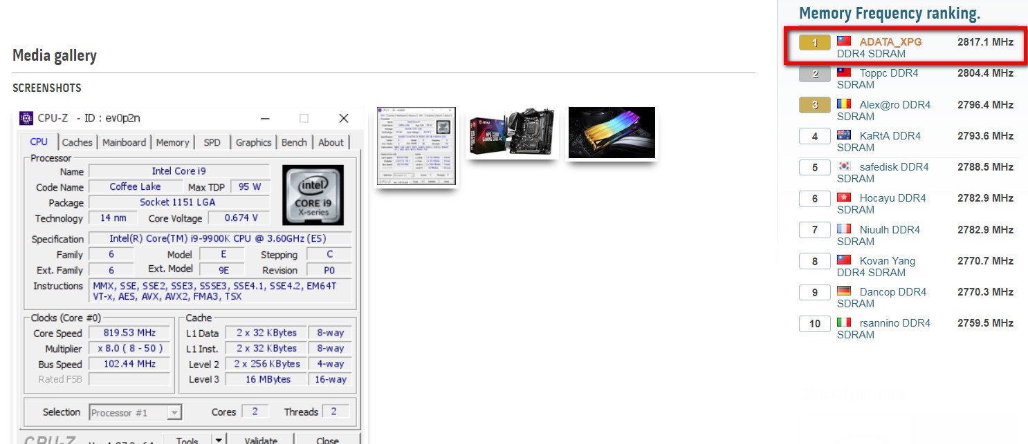 XPG SPECTRIX D60G减免超频记录在5634 mts HWBOT屏幕截图