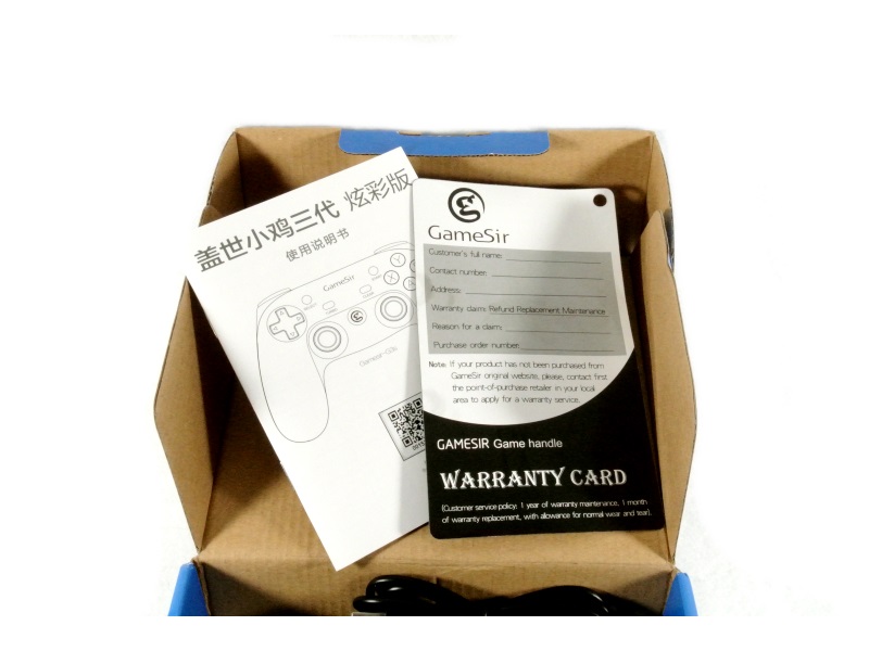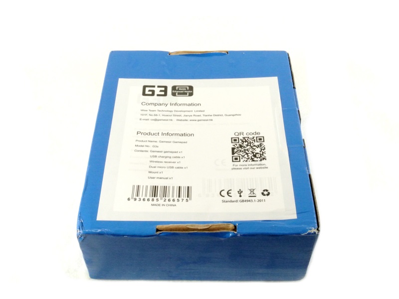 Gamesir G3S控制器将到达带有Gameir徽标的蓝色纸板箱和正面的控制器图形。盒子的背面有公司信息QR码和一些产品信息。侧面很简单,只有一个小摘录说“额外的手感”。该软件包在视觉刺激和保护控制器方面做得很好。