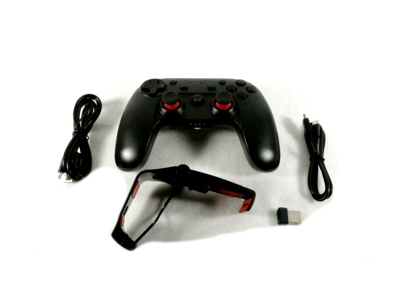 啊!最后,最好的部分是打开盒子。首先,您将使用用户手册和其他文书工作。在文书工作的下方,我们发现控制器被塞进了一块装饰的泡沫聚苯乙烯。坐在手柄之间的控制器旁边,我们发现支架也紧紧地挤进了泡沫聚苯乙烯中。在左上角,我们发现USB加密狗居住的一点剪裁。电缆不适合任何东西,而是在摇晃时没有看到盒子在盒子上翻转。内容的摘要。Gamesir做得很好,确保控制器在运输过程中不会受到伤害。