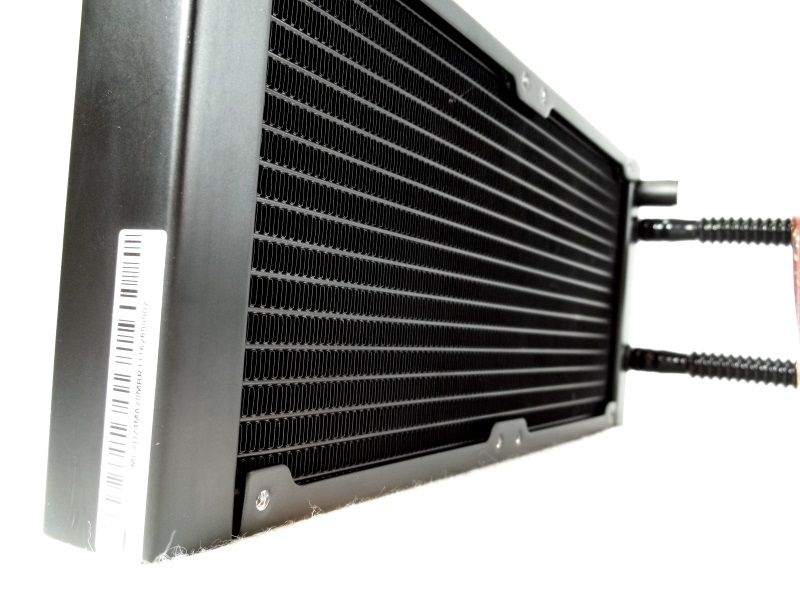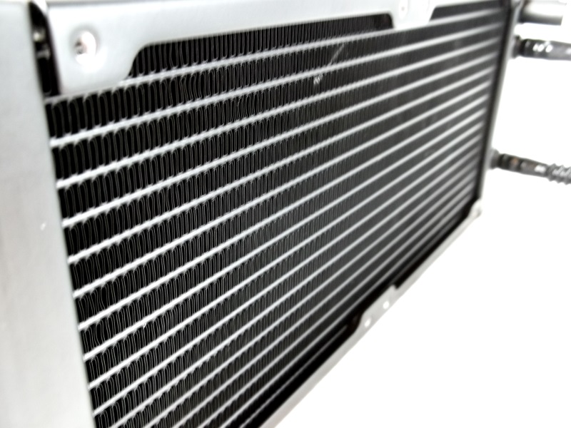 散热器有一个很好的凸起区域。表面是半光滑的。完成不是完全镜面完成,但绝不是皱折和磨损。底座似乎完全由铜制成,这是你能得到的最好的热传递。软管是FEP管的核心。虽然肋纹闪亮的选择可能不是每个人的首选。这种解决方案确实提供了优越的扭结保护。
